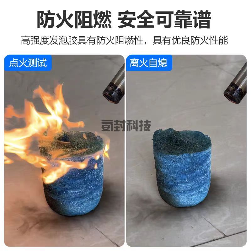 快速发泡:在现场混合后,15秒左右快速发泡,并涨发固化成型,紧密填充。